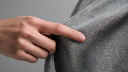 Touching a clean and water repellent gray fabric textile for safety applications Generative AI