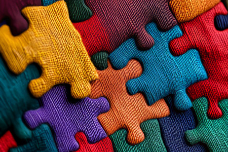 Vibrant jigsaw puzzle unity abstract image signifying teamwork and collaboration with playful twist