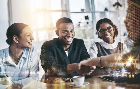 Business people work together in office. Concept of teamwork, partnership and startup. double exposure