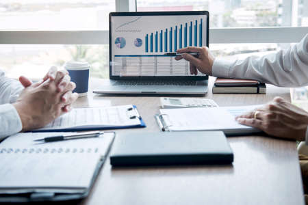 Business people working together discussing plans and discussing financial diagram, Teamwork, Success