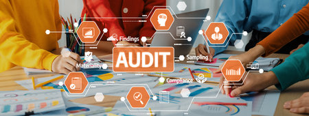 Audit Ensuring Compliance and Accuracy in Financial Reporting on a Wide Banner, Business and Technology Concept.