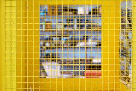 Yellow metal net with blurred abstract background