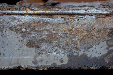 Metal rusty rods from the concrete wall, Steel corrosion in old reinforced cracked concrete structure with damaged.