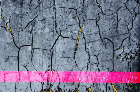 Old damaged cracked asphalt road section with old paint road marking. texture damage. Deterioration of the road surface. copy space