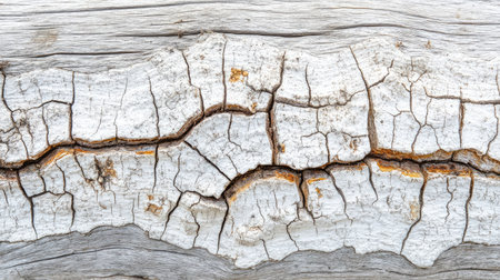 Close-up of aged log placed on white, showcasing growth lines and cracked bark