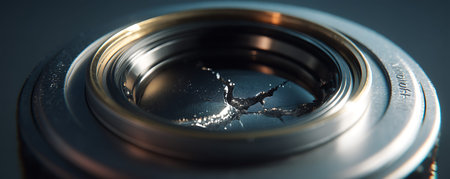 Closeup of a broken mirrorless camera lens. Shallow depth of field.