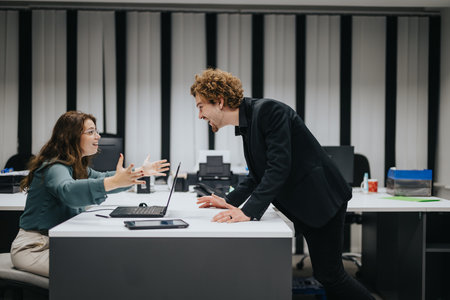 An explosive image capturing a heated exchange as a woman passionately yells at a man during a heated dispute