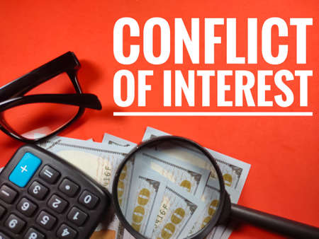 Interest Conflict concept. Wooden alphabet letters on a gray chalk board