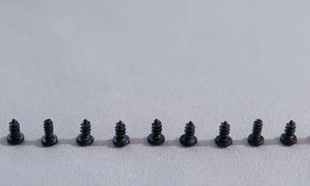 Black steel self-tapping screws used in handicrafts background texture