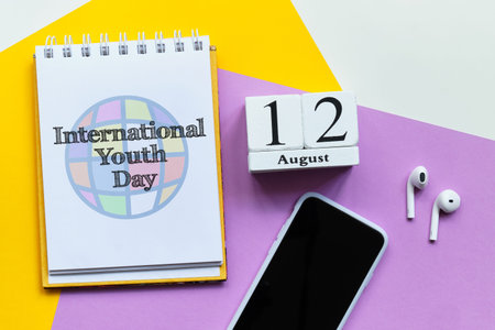 12th august - International Youth Day. Twelfth day month calendar concept on wooden blocks with copy space