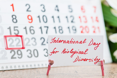 Image of may 22 calendar on floral background with flowers, empty space for text. International Day for Biological Diversity