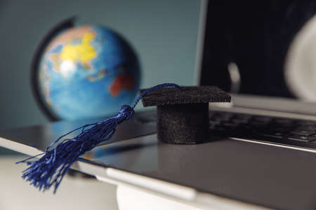 graduation cap earth globe. High quality and resolution beautiful photo concept