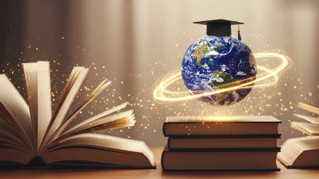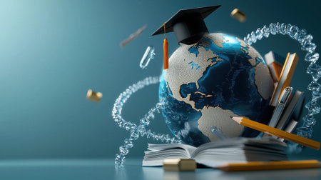 Global Education Concept. Earth with Graduation Cap, Symbolizing Worldwide Learning and Knowledge