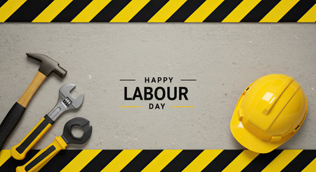 Labour day Celebrated on 1st May , concept of Labourers freedom and happiness, Wrench and Tools in background.