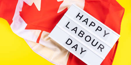 Happy Labour Day greetings on lightbox with canadian flag