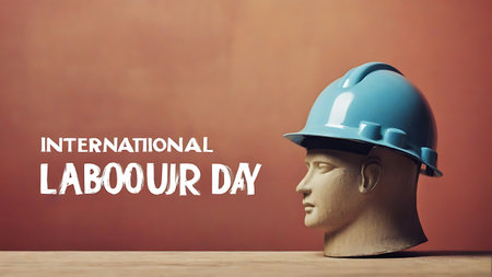International Labor Day background with mannequin head and hard hat.