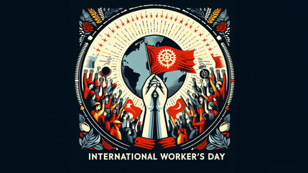 1st May is International Labour Day also known as May Day for Manufacturing industry workers rights .Space for Text .