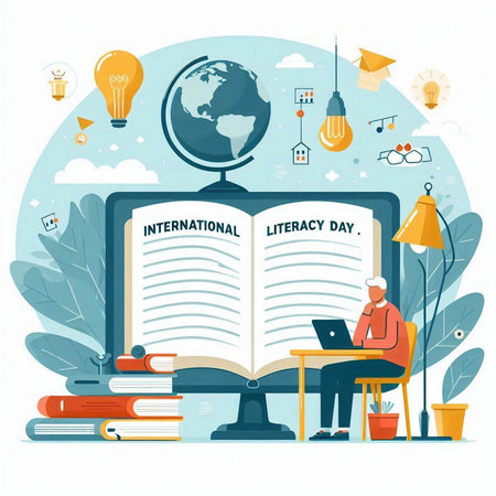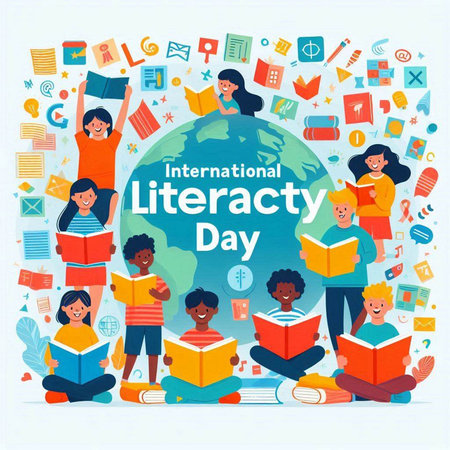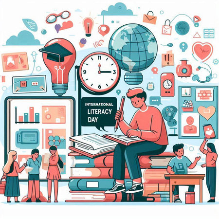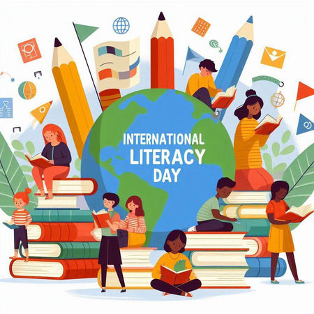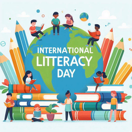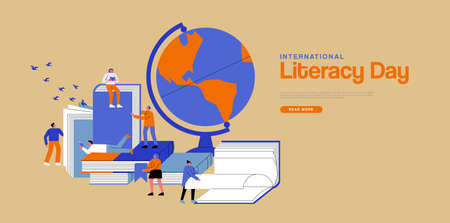 International literacy day flat vector illustration. World literacy day concept. Studying and learning.