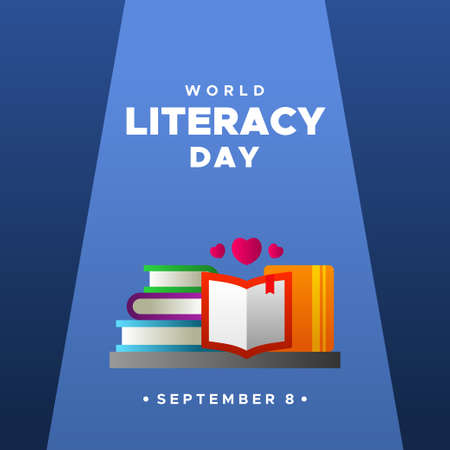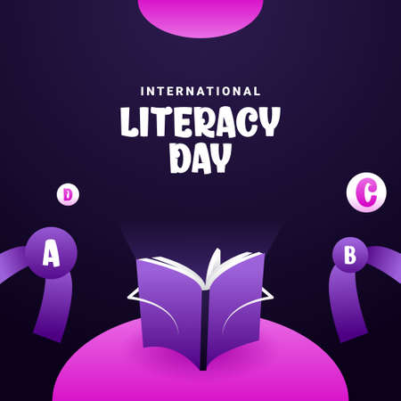 International Literacy Day social media poster and cover, 8th September with open book illustration vector. eps 10 vector