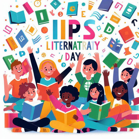 a book with a bookmark with the text international literacy day written in it, with a retro effect