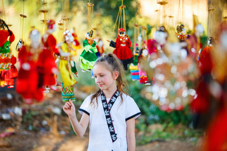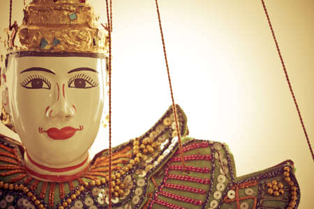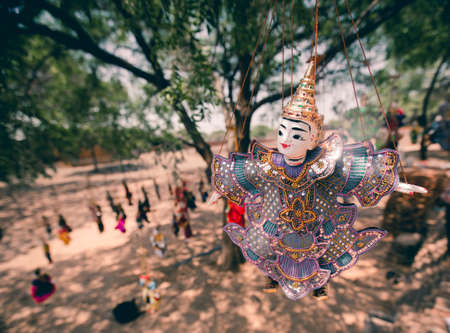 Traditional Burmese puppet for sale at the shop in Bagan, Myanmar. Legend has it that puppetry first appeared in the 11th century of the Bagan Dynasty.