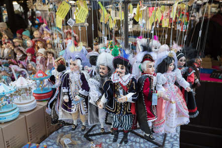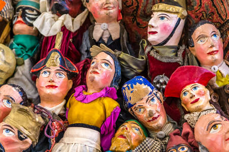 CESENA (FC) - FEBRUARY 17, 2019: lights are enlightening puppets for sale on stalls at antique fair