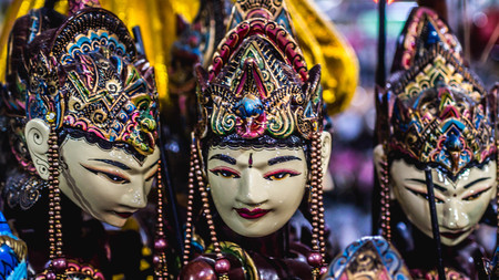 Colorful Myanmar traditional puppets as a souvenir for tourist