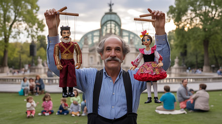 Colorful Traditional Indian Puppet Show Scene Celebrating Republic Day with Intricate Costumes and Cultural Heritage Art.