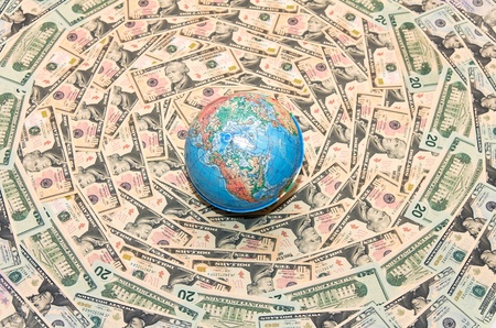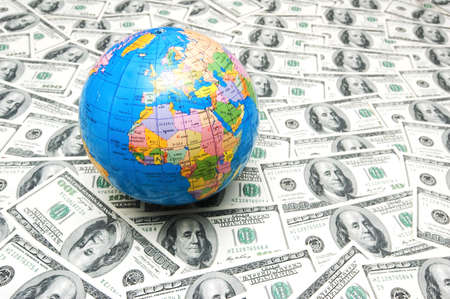 Globe over many american dollar bank notes