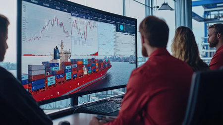 A training session on board a container ship where crew members are learning about new technologies and techniques for improved navigation and cargo handling