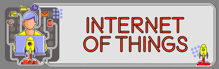 Conceptual caption Internet Of Thingsconnection of Devices to the Net to Send Receive Data. Business idea connection of Devices to the Net to Send Receive Data