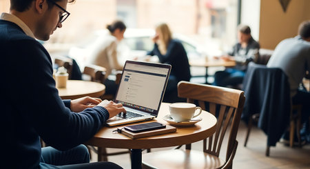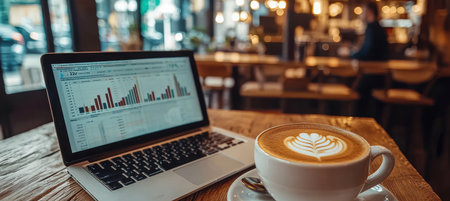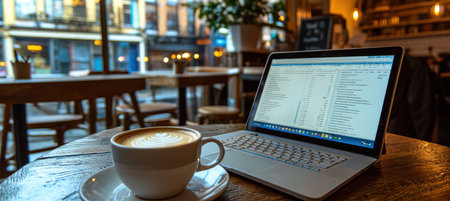 Productive Work Session in a Cozy Cafe Setting with Laptop and Coffee for Freelance Professionals