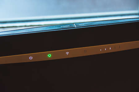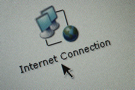 Close-up of an interface computer button for intenet connection and an arrow cursor