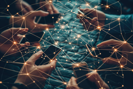 Close-up of a smartphone displaying colorful network graphics, symbolizing connectivity and data exchange.