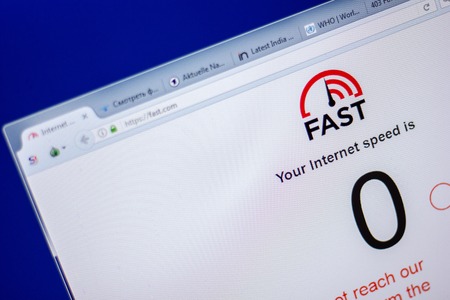 Ryazan, Russia - June 05, 2018: Homepage of Fast website on the display of PC, url - Fast.com