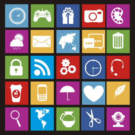 Colorful simple flat icon set 1 with rounded rectangle frame - for web design, user interface ui, infographic and mobile application