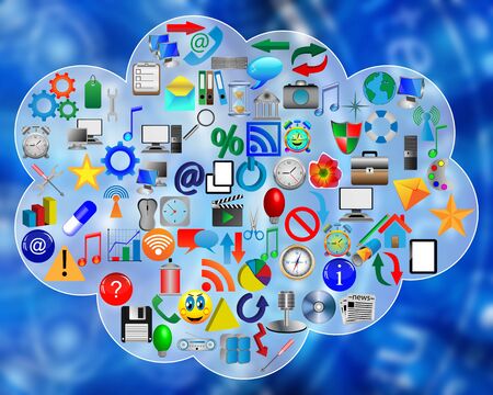 A captivating blue digital network showing connections and data transfer, featuring icons that represent various applications, ideal for technology and innovation themes.