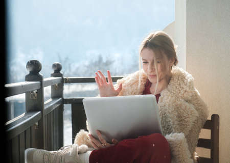 Woman working from home on the balcony