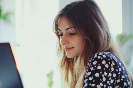 Young beautiful woman using a laptop at home