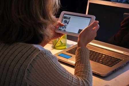 woman with tablet or computer in the home room