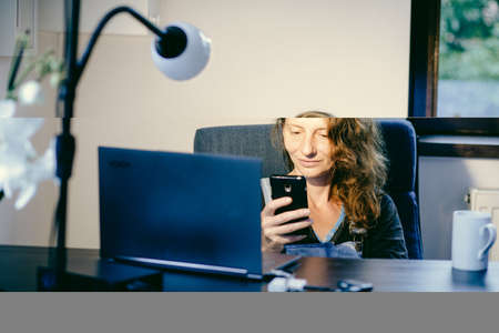 casual woman working in home office