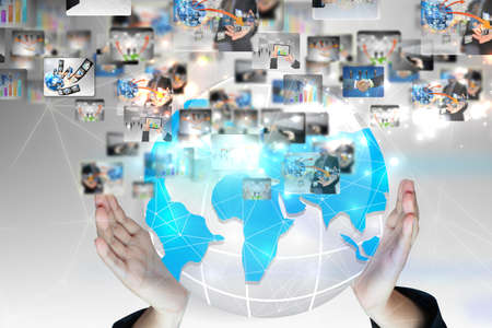 businessman holding business world.