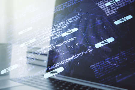 Multi exposure of abstract graphic coding sketch on modern computer background, big data and networking concept
