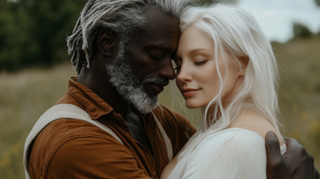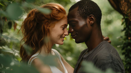 Love and diversity concept with a dark-skinned man and a white-skinned woman - generated by AI