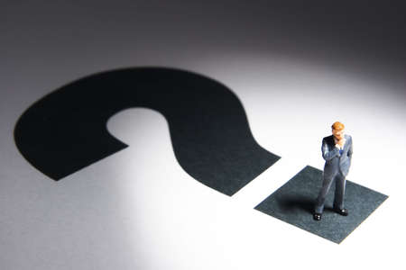 Business figures and question mark