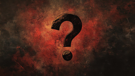 A striking question mark symbol surrounded by a grunge background featuring dramatic colors. Perfect for themes of mystery, inquiry, and uncertainty.