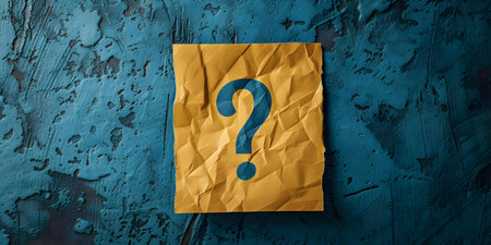 Sticky note with red question mark on blue background