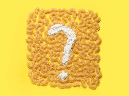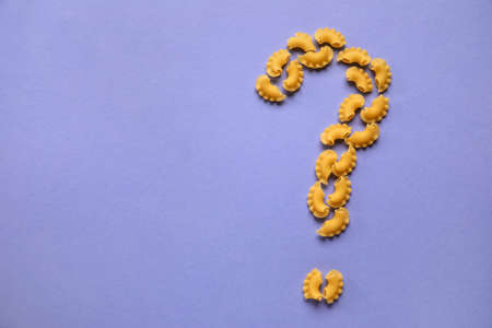 Question mark made from pieces of torn colored paper, abstract background with copyspace for text