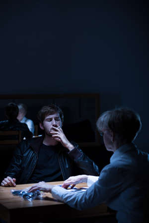 A police officer introduces the suspect to the details of the case