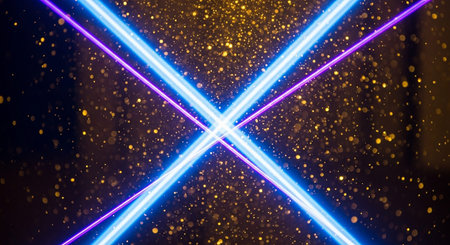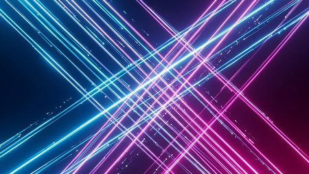 A captivating image featuring intersecting neon lights against a dark background, creating a dynamic and futuristic visual effect.